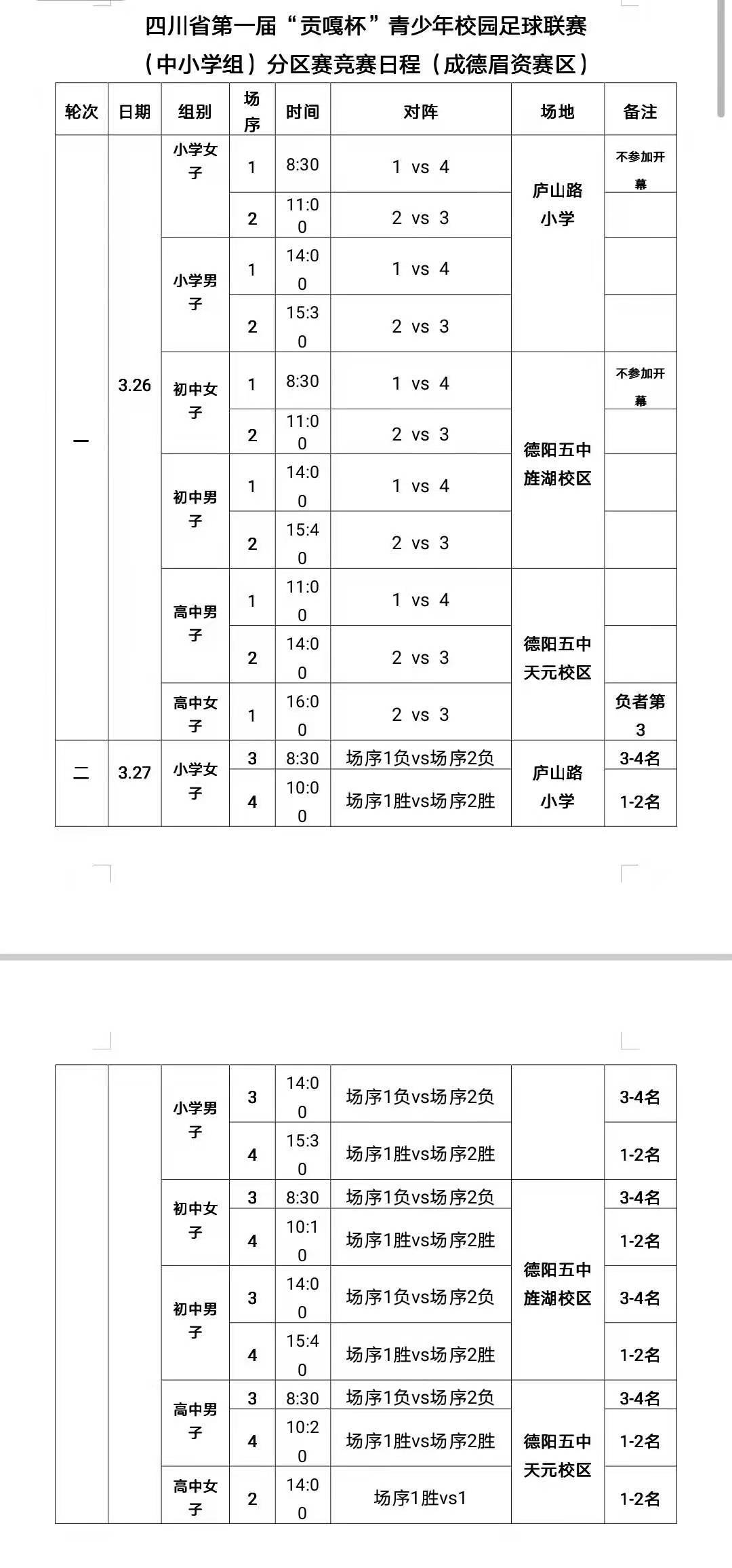 “贡嘎杯”青少年校园足球联赛(中小学组)成德眉资赛区完整赛程