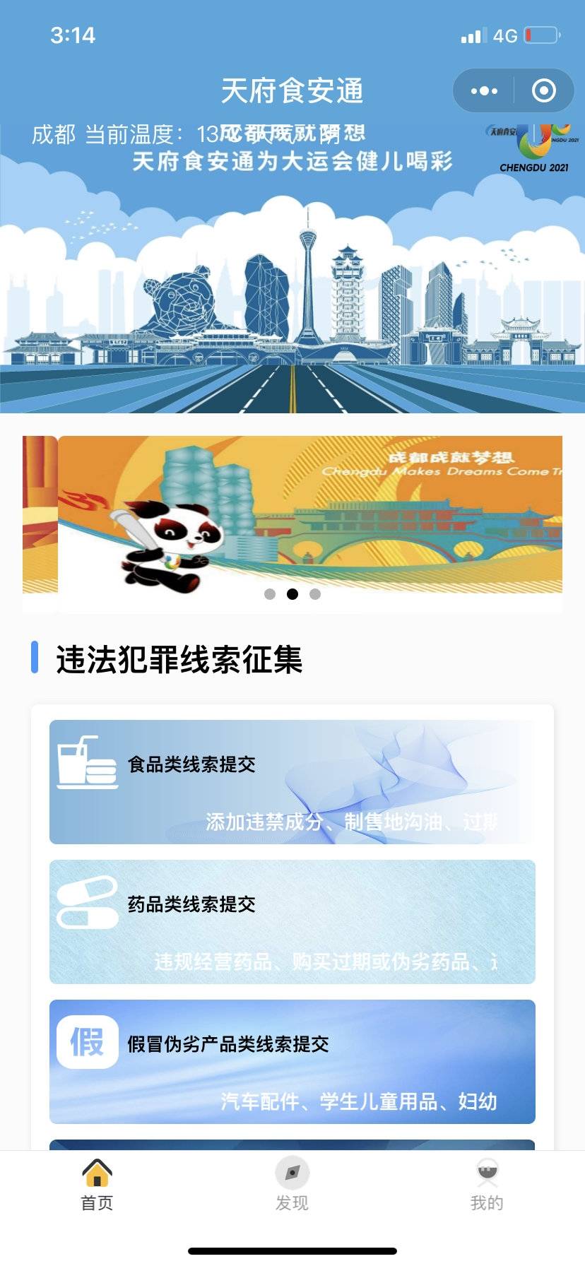 3月25日,成都市公安局食药环犯罪侦查支队面向社会公众发布了“天府食安通”微信小程序,直接面向人民群众征集社情民意和工作线索。
