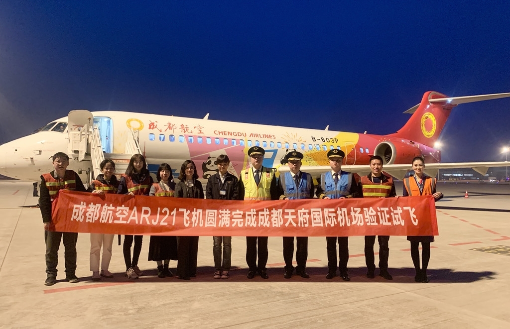 3月25日20:20,经过多次起降、绕飞,在近4小时验证飞行后,成都航空ARJ21机型“中国梦号”彩绘飞机完成天府机场第二阶段验证试飞任务离场,标志着成都天府国际机场真机试飞工作圆满完成。