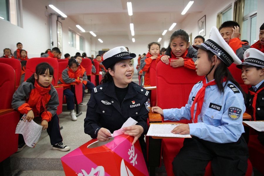 当日,为迎接全国中小学生安全教育日,四川省内江市东兴区阳光学校开展“交通安全进校园”主题教育活动,邀请市交警支队直属二大队民警对学生进行内容丰富、形式多样的交通安全教育,让学生们了解和掌握交通安全知识,从小养成遵守交通规则的良好习惯。
