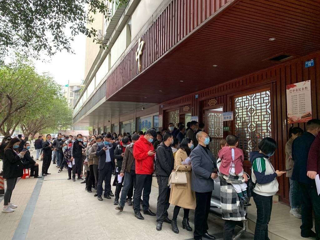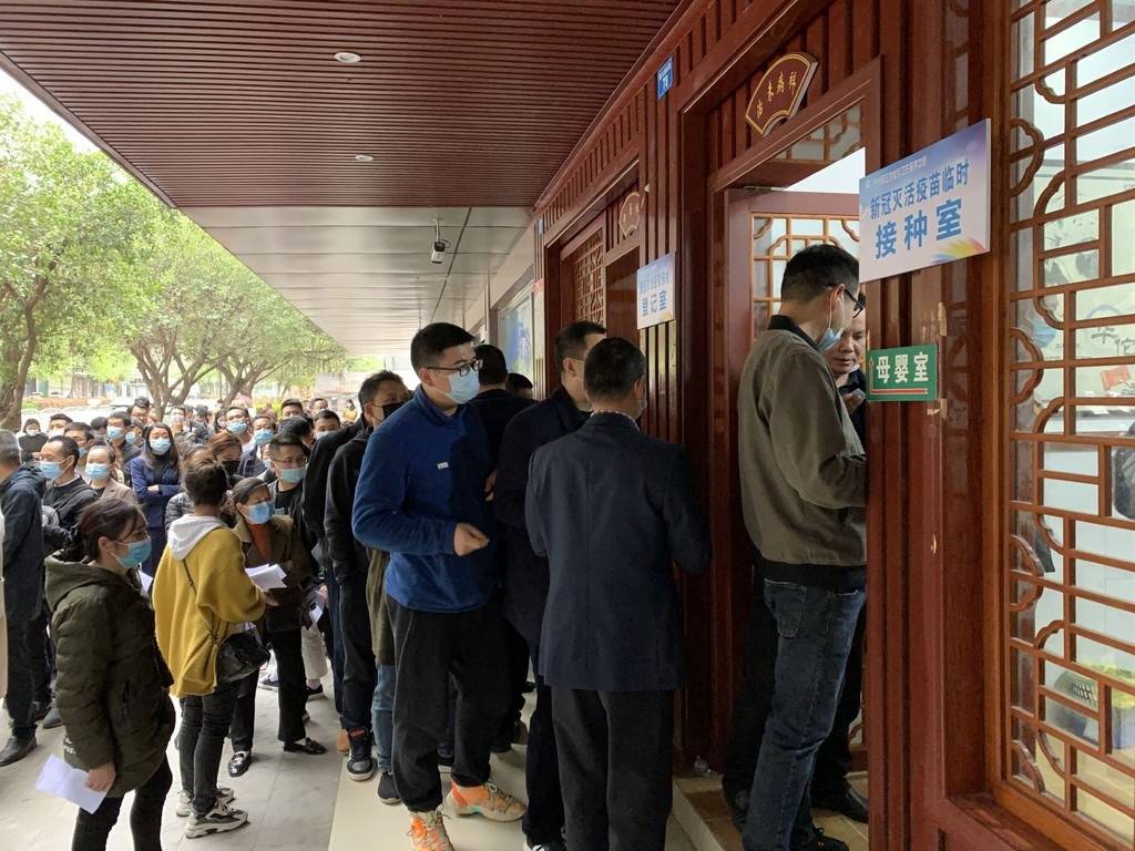 “社区通知来接种疫苗,说是免费,我们一家人都要来。”3月25日下午4点35分,巴中市巴州区龙泉社区卫生服务中心门口排起7个长队,家住巴州区江北社区市民唐光耀排在一支队伍末尾,他前面大概有三四十人。