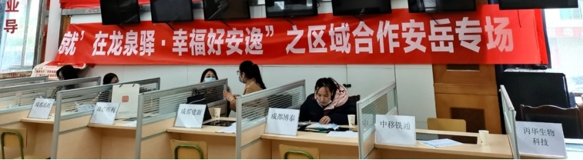 3月26日记者从成都市龙泉驿区总工会获悉,围绕重点产业、重点企业、重点群体,龙泉驿区总工会、区人社局等5部门联动射洪市、安岳县人社部门,精心策划“‘就’在龙泉驿·幸福好安逸”就业促进专项行动,在龙泉驿区、射洪市和安岳县三地同频召开区域合作专场招聘会,全力促进城乡群众就业更加充分、创业更加活跃、增收更加持续,高质量推动“福美好生活十大工程”落地落实。