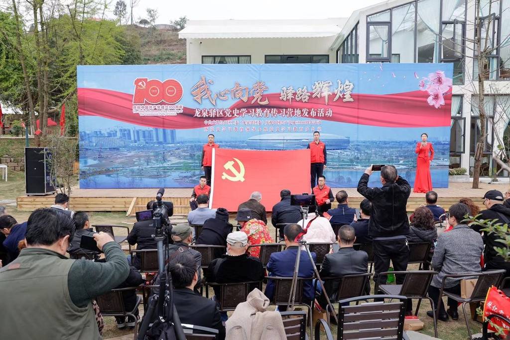 活动现场,“我心向党 驿路辉煌——龙泉驿区党史学习教育传习营地”授牌仪式举行,将党史学习教育基地与龙泉山融于一体,旨在发挥龙泉山生态资源丰厚、网红民宿打卡群众多的优势,以“我心向党 驿路辉煌”为主题,构建红色文化场景、特色活动场景、互动体验场景,成为青少年思政课堂、党员干部教育基地、游客群众体验平台,引导广大党员干部群众学党史、感党恩、永远跟党走。