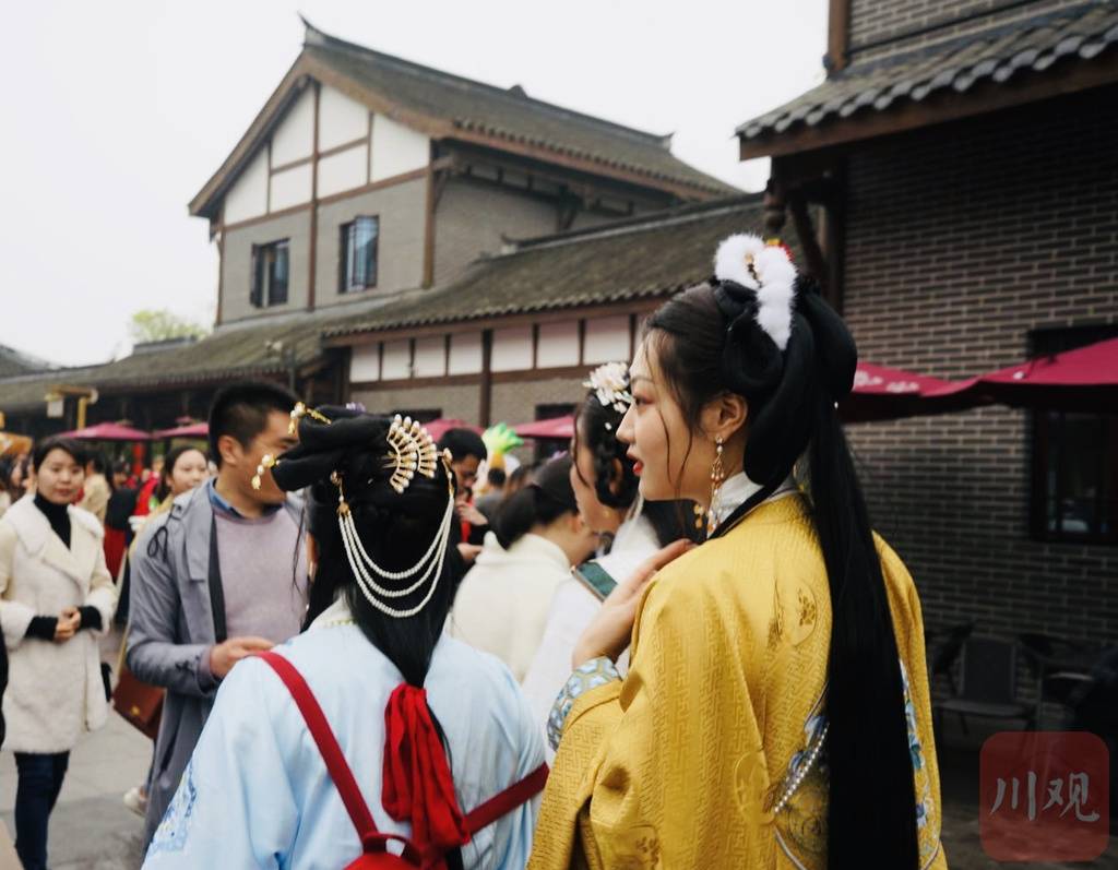 3月26日,四川省泸州市分水岭镇伞里古街,四川省第十二届(春季)乡村文化旅游节(简称省乡村文化旅游节)在这里开幕。一把把绘有宝山春眺、龙潭时雨等“泸州八景”元素的油纸伞,身着汉服的青年男子和女子打卡自拍,一时人头攒动。