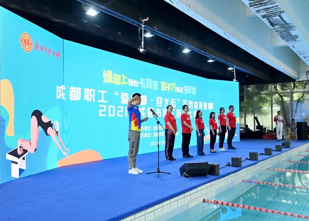 3月27日,由成都市总工会主办、成都市劳动人民文化宫承办的“绿道上燃烧卡路里 百千万释放多巴胺”——成都职工“爱成都·迎大运”系列体育赛事2021年成都市职工游泳比赛正式开幕。