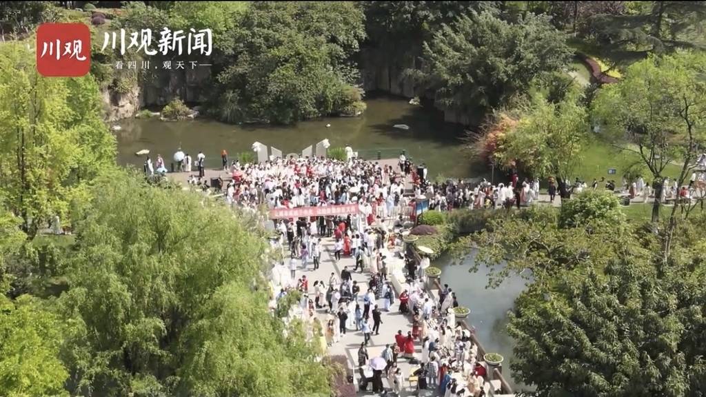 南宋吴自牧《梦粱录·二月望》中言:“仲春十五日为花朝节,浙间风俗以为春序正中、百花争放之时,最堪游赏。3月27日正是农历二月十五,在成都市成华公园内,一场花朝盛会在明媚的春光中吸引了无数汉服爱好者前来。