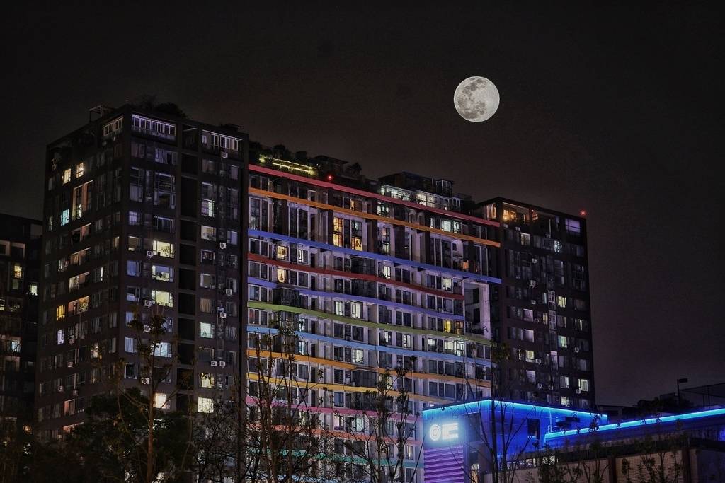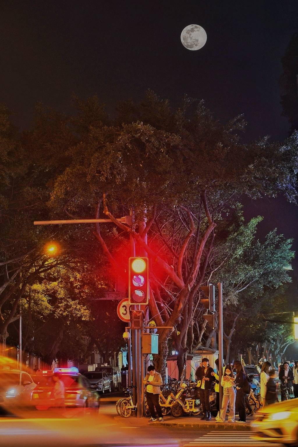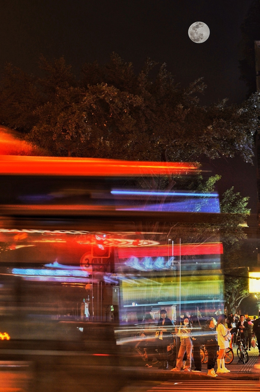 3月28日农历二月十六,俗话说十五的月亮十六圆,放在今夜的成都太贴切不过。一天的阳光明媚让夜幕下的圆月更显明亮。一环路南一段女贞树的树干被满天星的灯珠包裹,树梢上挂满了五彩的灯笼,皓月当空的景致如是银河下凡,游走慢步的市民也无不为今晚的月色感到惬意。