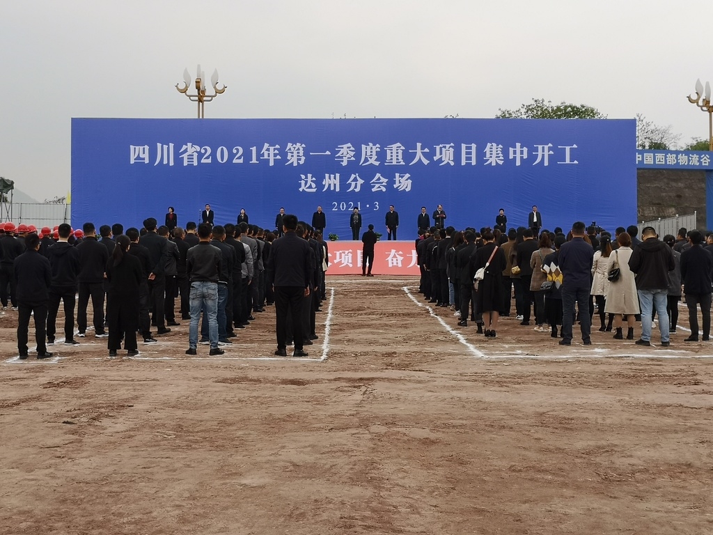 3月29日上午,四川省2021年第一季度重大项目集中开工达州分会场活动在位于秦巴物流园的中国(达州)西部物流谷项目现场举行。本次共集中开工项目77个,总投资718.5亿元。