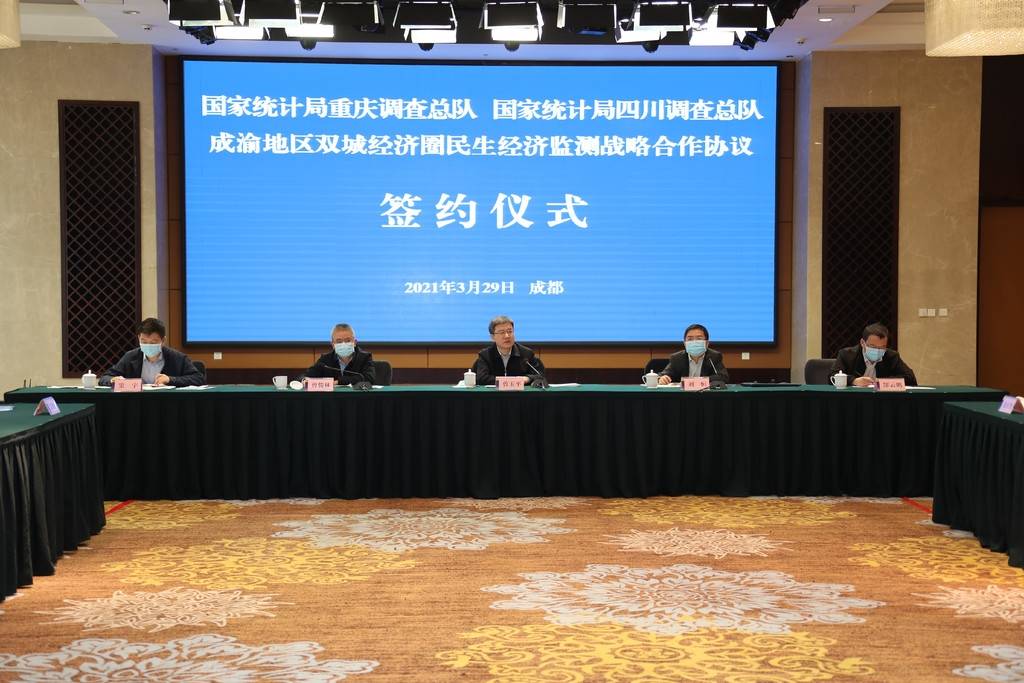 3月29日,国家统计局四川、重庆调查总队签署《成渝地区双城经济圈民生经济监测战略合作协议》,成立川渝调查总队战略合作领导小组及工作机构,审议通过《成渝地区双城经济圈民生经济监测工作机制》、《成渝地区双城经济圈民生经济监测2021年工作安排》、《成渝地区双城经济圈民生经济监测主要指标》。