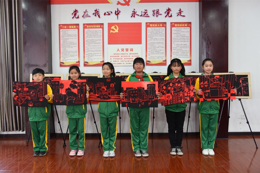 威远县河北街小学,同学们展示创作完成的主题作品。