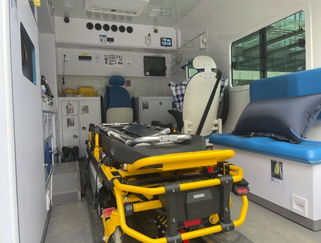 在记者参观过程中,医院救护车接到了一位急救病人,从电动担架转移病人后,经过特殊通道进入抢救室。据急诊科唐勇主任介绍,医院共配备了4辆全装型救护车,电动担架可自动升降,让转移病人的过程更加平稳。