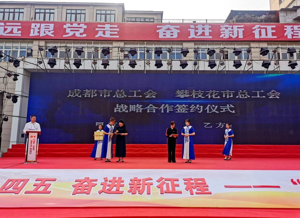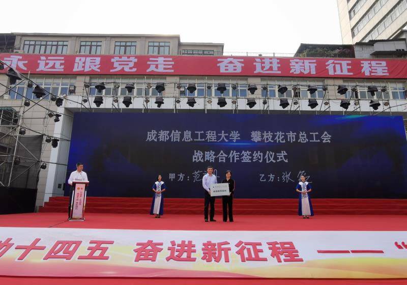 当天,中国劳动关系学院、中国工人出版社、成都信息工程大学、成都市总工会,与攀枝花市总工会签订战略合作协议,并分别授予攀枝花三线精神劳模(工匠)研修学院为中国劳动关系学院教学实践基地、全国产业工人学习社区攀枝花基地、成都信息工程大学继续教育基地、成都工匠学院攀枝花分院。