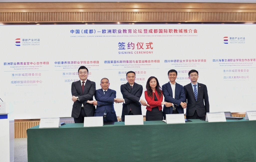 借助本次职业教育论坛契机,欧盟职业教育金堂中心、中欧康养旅游职业学院、德国莱茵科斯特有限公司共建项目、四川中德职业大学、四川海事交通职业学院等5个项目落地成都国际职教城。