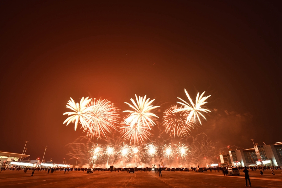 2021年3月30日,成都天府国际机场迎来烟火秀表演。在现场,流光溢彩烟火把夜空装点得绚丽多彩,十分的美丽。