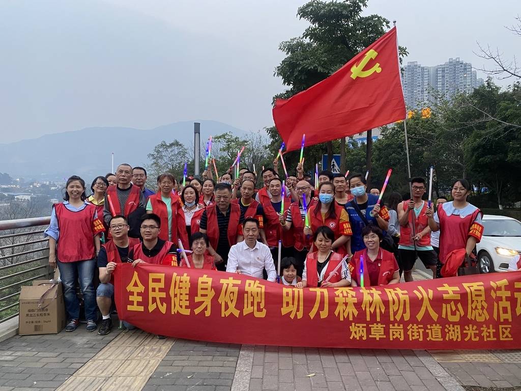 “全民健身,助力森防;文明祭祀,平安清明!”随着夜幕降临,60多名身穿红色马甲的志愿者一边跑步一边挥舞着荧光棒,向沿江健身步道的来往行人发出倡议。不少饭后散步的居民,在现场氛围的带动下,加入夜跑活动中。