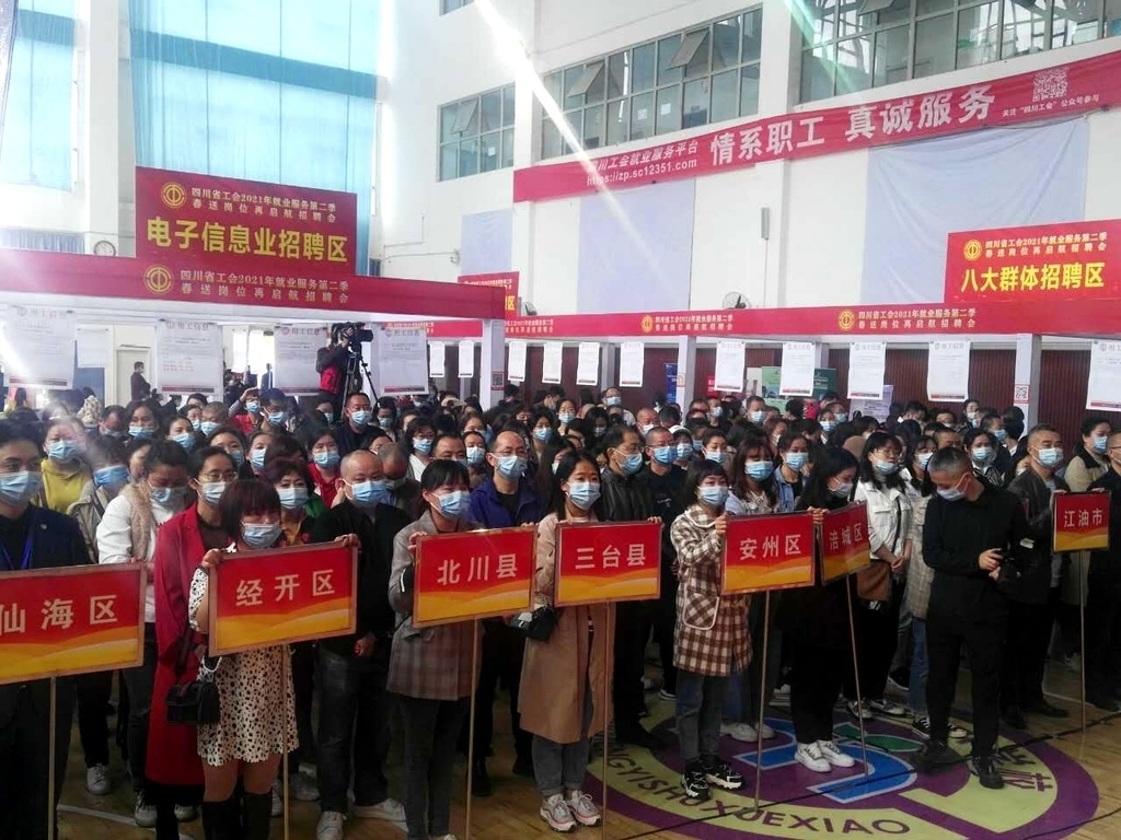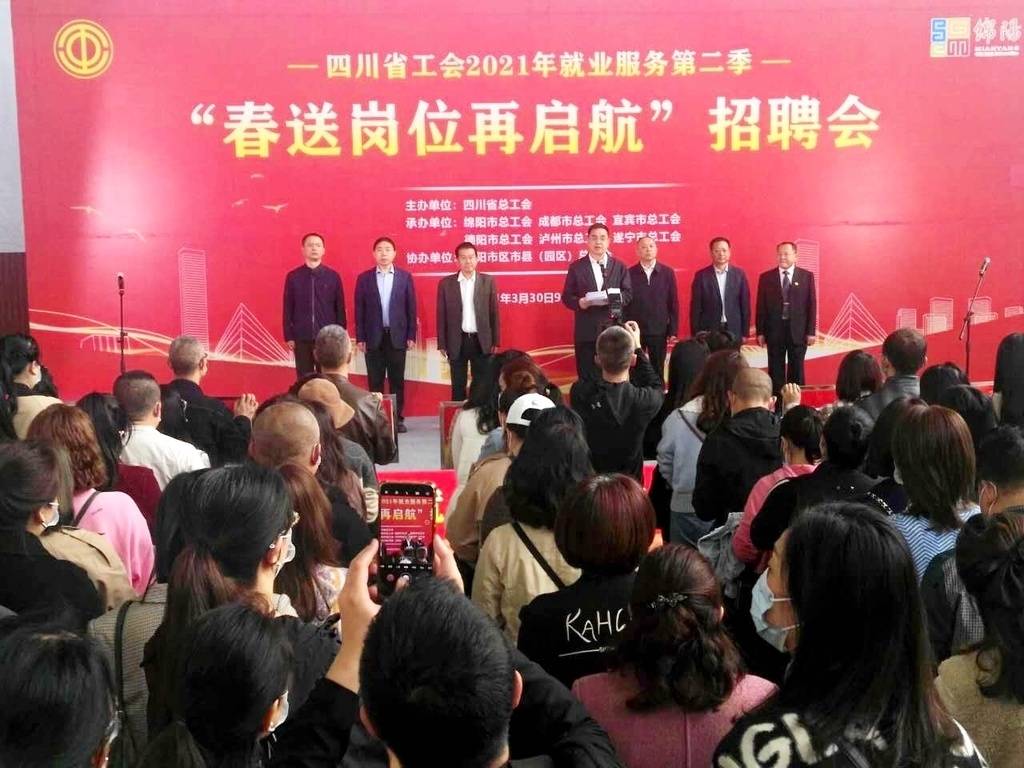 “工会‘娘家人’又带着岗位来啦!”3月30日,四川省工会2021年就业服务第二季——“春送岗位再启航”招聘会在绵阳市五一大厦篮球馆拉开序幕。四川工会就业服务平台同步发布招聘企业1052家,职位4510个,用工需求59919个,四川劳模、四川工匠、工会主席“直播带岗”,为企业与求职者架起“桥梁”。