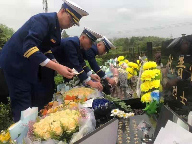 郁郁青松埋忠骨,烈烈英魂诉长风,全体指战员在烈士陵园悼念广场上整齐列队,庄严肃立。祭奠仪式在庄重的国歌声中开始,指战员面向烈士英雄纪念碑脱帽默哀,对长眠于此的革命先烈致以无尽哀思和深切缅怀。伴随着深情而庄重的《献花曲》,6名礼兵手持花篮,迈着坚定有力的礼步走到纪念碑前,轻轻放下花篮,花篮红色缎带上的“革命烈士永垂不朽”八个大字熠熠生辉。支队领导神情庄重、缓步上前,仔细整理花篮上的缎带。接着,全体指战员缓缓地走向纪念碑,将一束束鲜花摆放在纪念碑前,向革命烈士敬礼致敬,追思先烈英勇顽强、忠诚为民的崇高革命精神。