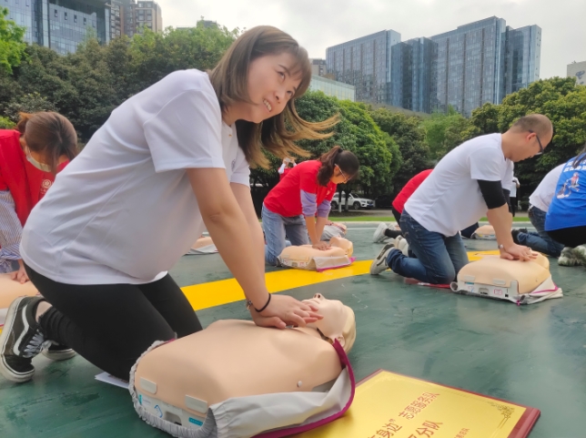 据了解,成都市“救在身边”志愿者服务活动已连续举办3年,培训人数超过25万,旨在吸引更多的医务工作者加入“救在身边”志愿服务队伍,进一步扩大“救在身边”志愿服务项目服务范围和成都市急救技能培训的普及力度。成都市急救指挥中心书记柴钰莹介绍,近年院外心梗或猝死病例频发,现场第一目击者在“黄金4分钟”内对猝死患者实施有效心脏复苏的作用日益得到重视。“活动通过连接全市医疗资源,打造了一个面向公众的急救培训基地,让医务志愿者们学会急救后再走进民间,把急救知识和技能带给社会,让更多人敢于出手相救。”