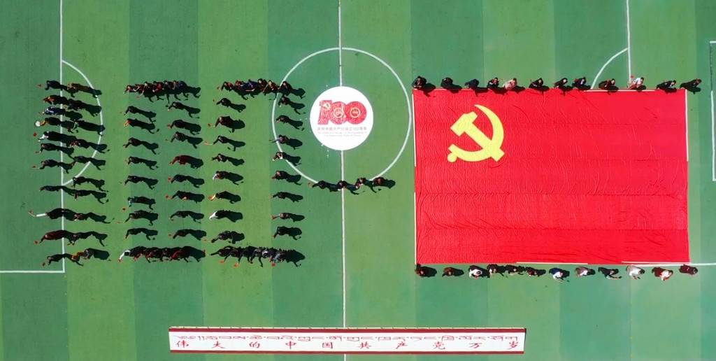 “起来,不愿做奴隶的人们……”3月30日,壤塘县寄宿制小学操场上,壤塘县400余名党员干部和学生共同升国旗、唱国歌,并以人形拼出“100”的数字,喜迎中国共产党成立一百周年。