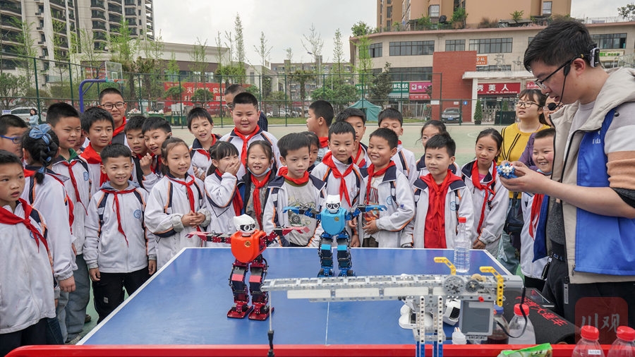 2021年3月31日,由眉山市科协组织“科普大篷车”进校园活动走进视高小学。活动现场开展了趣味科学实验、机器人展示、电磁探秘、数字生活、声光体验、运动旋律等互动活动,通过让孩子们零距离“触摸”神奇的科技,最大限度满足孩子们学习科学及科普文化体验,从而感受到科技的魅力。