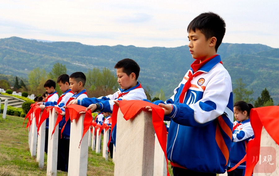 2021年3月31日,清明节前夕,通江县实验小学组织少先队员到位于沙溪镇王坪村的川陕革命根据地红军烈士陵园拜谒革命先烈。