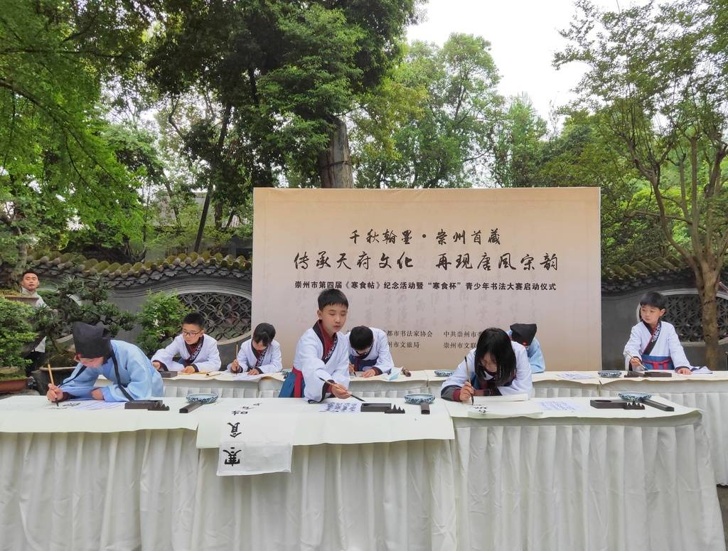 2021年崇州市第四届《寒食帖》纪念活动暨“寒食杯”青少年书法大赛启动仪式以“千秋翰墨·崇州首藏”为主题,旨在传承天府文化,再现唐风宋韵。