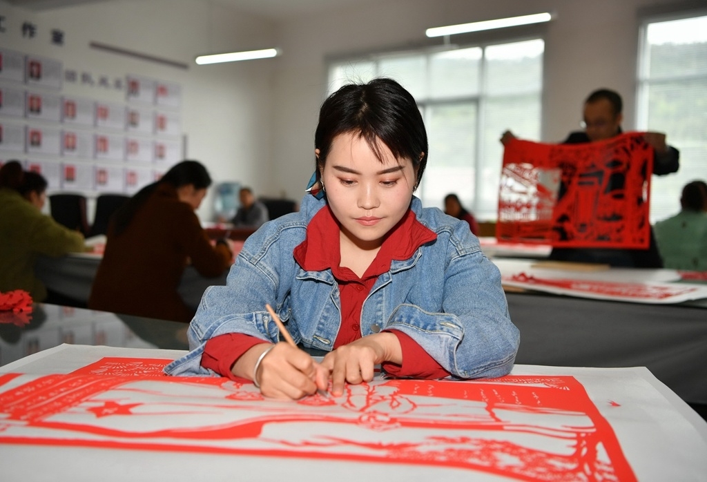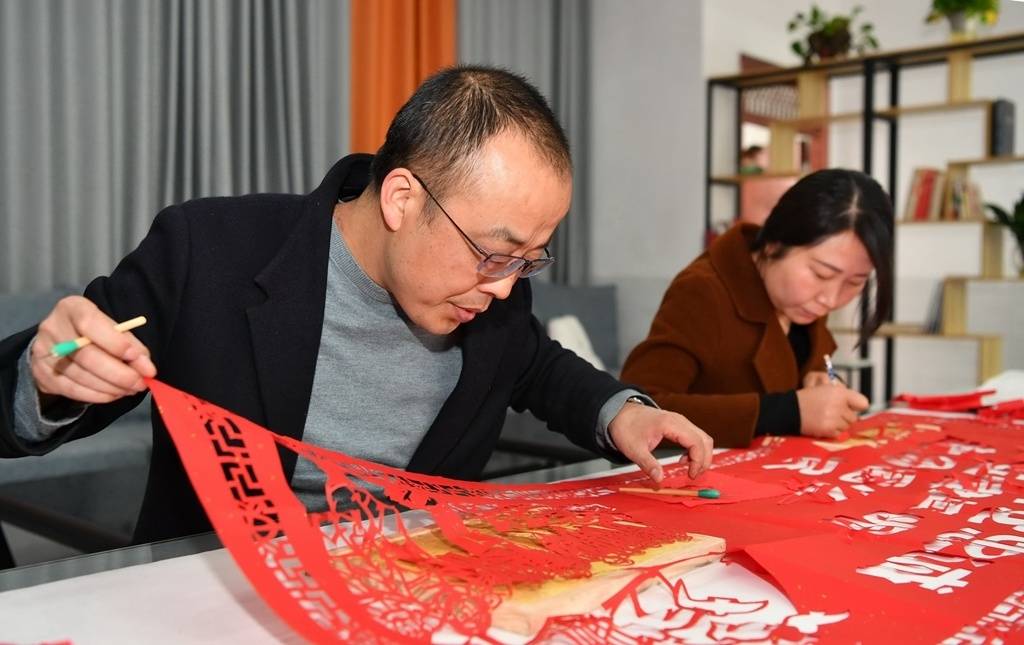 4月1日,以“正心铸魂”为主题的单幅剪纸作品制作完成。