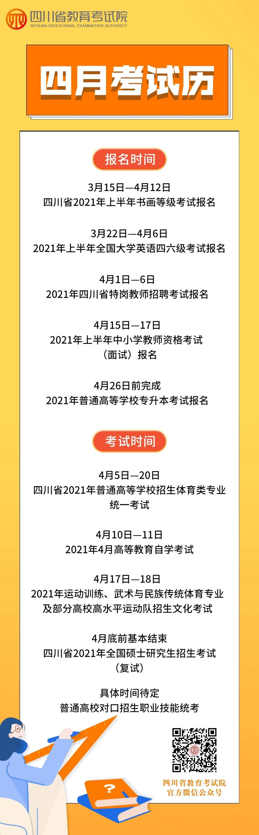 收藏!2021年4月四川教育考试月历新鲜出炉