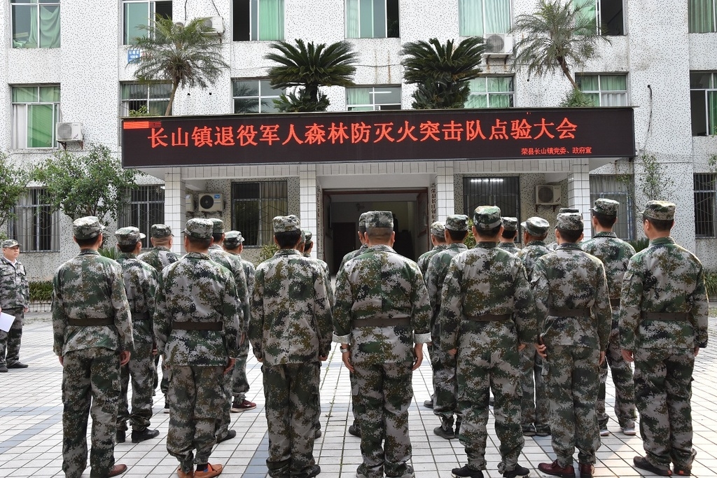 值得一提的是,为充分发挥退役军人在急难险重、应急维稳中的骨干作用,荣县长山镇党委政府在自贡市、荣县退役军人事务局的指导下,组建成立自贡市首支退役军人森林防火突击队。“成立这支30人的突击队伍,是为更扎实、更专业地抓好森林防火,更有效地保护森林资源,通过不定期的学习培训,能做到召之即来,来之能战,战之能胜。”长山镇镇长吴付华介绍。