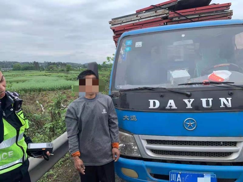 4月1日下午,四川高速公安四分局一大队民警在辖区巡逻时发现一辆川A牌照的蓝色小货车,在行驶过程中突然车身左摇右摆如醉汉般,险些撞上其他车辆。