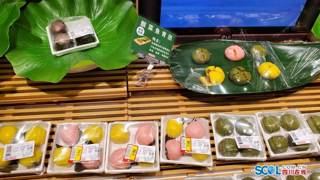 4月3日,四川在线记者走访发现,成都多家商超已将青团摆放在了主题专区等显眼的位置销售,推出的青团口味也颇“清奇”,螺蛳粉味、笋干味、凤爪味、酸菜鱼味、辣条味……略显“奇葩”的口味引来众多顾客驻足挑选购买。