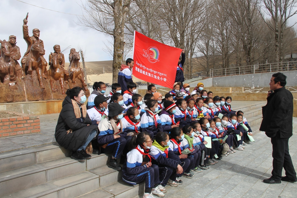 “这是唐荣光烈士的墓碑,曾服役于成都军区3644部队,1961年6月11日在理塘县平叛时牺牲……”4月2日,作为烈士陵园第三代守墓人的洛绒志麦,用藏语给理塘县城关第三完全小学五二班的43名学生讲英烈故事。