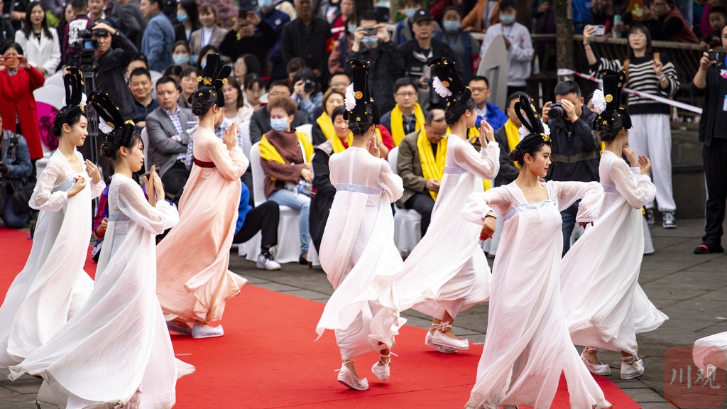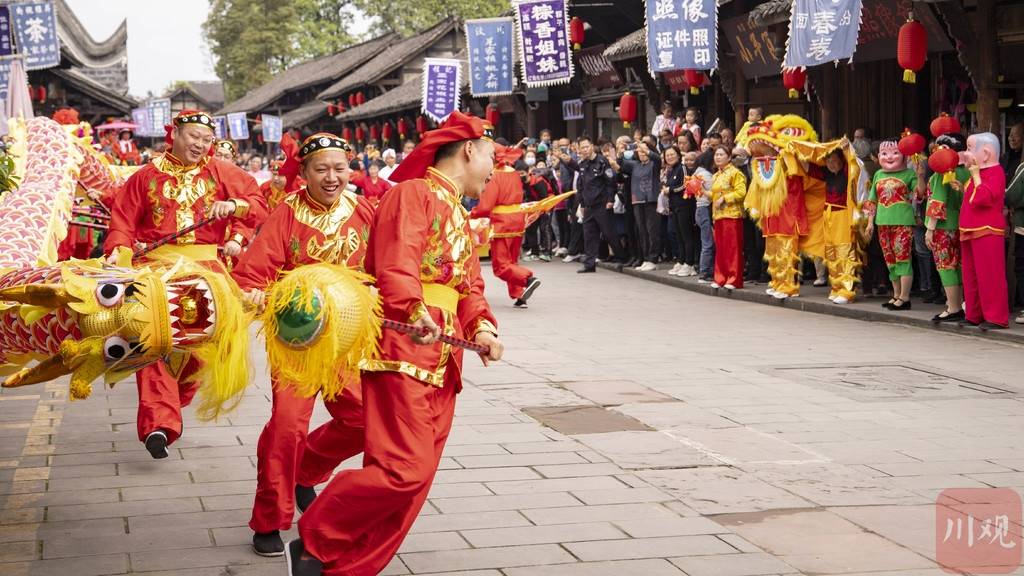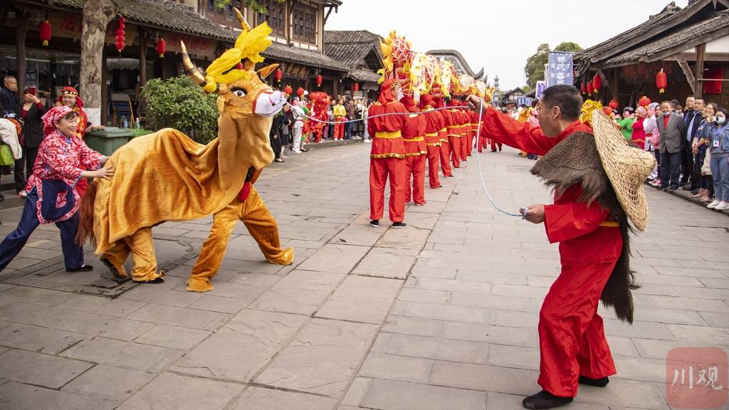 “忆清明•最元通”是崇州市元通古镇旅游品牌,是“川西坝子农耕文化记忆窗口”。4月3日, 2021年第268届元通清明春台会如期举办,成都“最天府”的传统节日习俗之一的“金牛闹春”祭祀祈福仪式在精彩上演。祭祀仪式分为请神祈福、迎神受福和送神谢福等部分,既保留了传统的经典风俗,又融入了崇州独特的民俗习惯。由当地各村(社区)的群众自发组织、参与的民俗巡游活动,造型各异、风格不一的花灯,划旱船、踩高跷等多样的传统文化元素接连上演,吸引了不少游客和市民驻足体验。