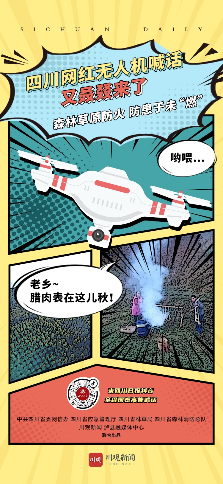“哟喂老乡!腊肉不要在这儿秋”四川网红“小飞机”喊话又双叒来了 | 无人机喊话森林防火①