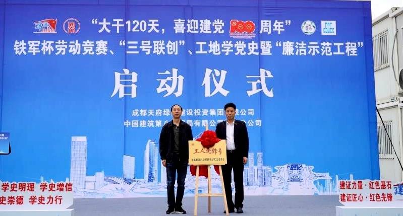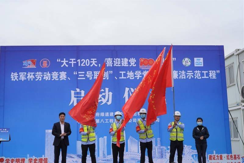 活动中,该公司工程管理部负责人向各参赛单位发出了竞赛倡议并宣读了《劳动竞赛实施方案》,明确竞赛任务目标和考核机制。成都市环城生态区生态修复综合项目(东、西片区)二期六批次施工/标段项目经理、党支部书记刘海亮带领全体参赛项目主要负责人进行集体竞赛承诺,表达完成目标任务的信心和决心。成都市交通建设产业工会、成都市青羊区苏坡街道总工会,以及建设、监理、施工、设计等有关单位负责人分别为主会场11家参赛单位进行授旗,并分别为创建“工人先锋号”、“青年先锋号”、“党员先锋号”揭牌。中建八局西南公司基础设施分公司总经理王伟代表公司分别于8个在蓉区域A类基础设施项目主要负责人签订劳动竞赛竞赛责任状。
