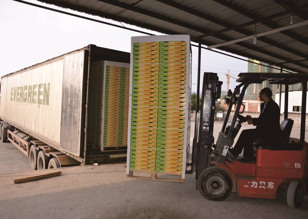 广元苍溪县猕猴桃食品有限责任公司的红心猕猴桃出口装车(资料图)