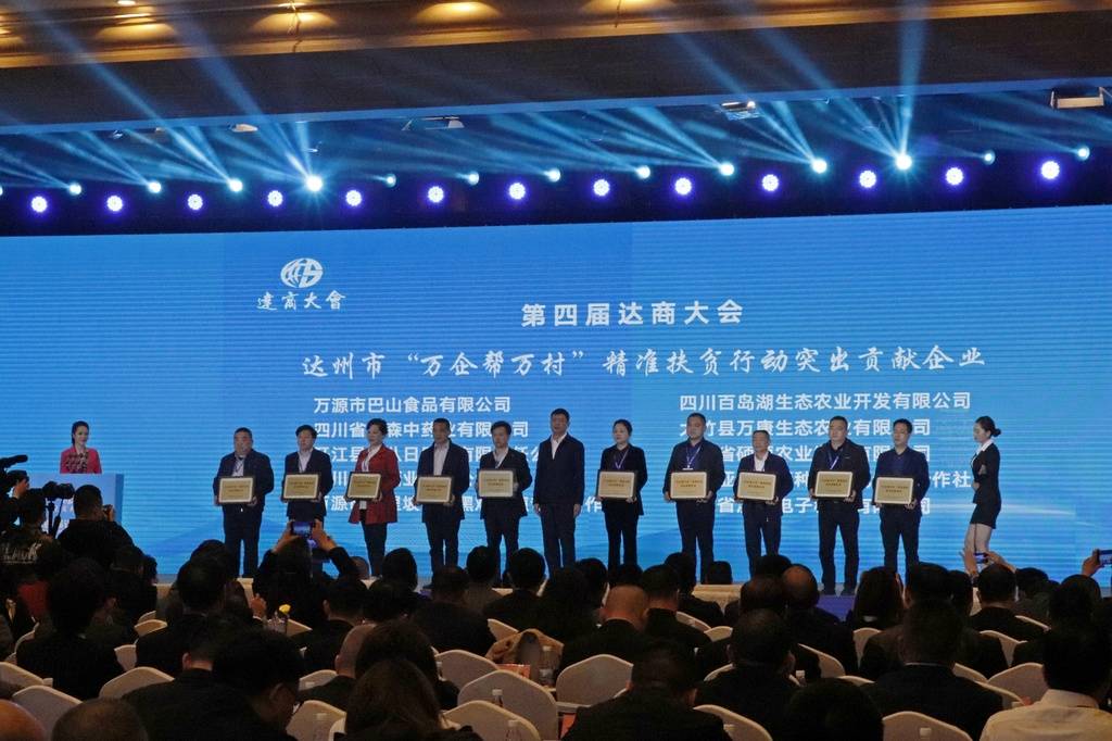 4月6日,第四届达商大会举行。会上表扬了“十大杰出达商”“十大优秀达商”“优秀异地达州商会”和达州市“万企帮万村”精准扶贫行动突出贡献企业。