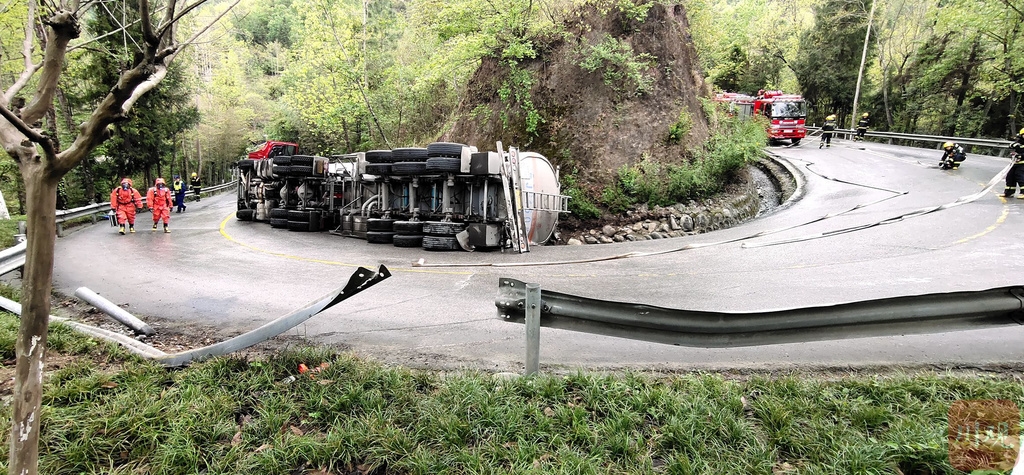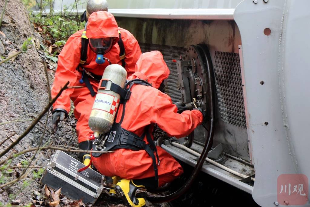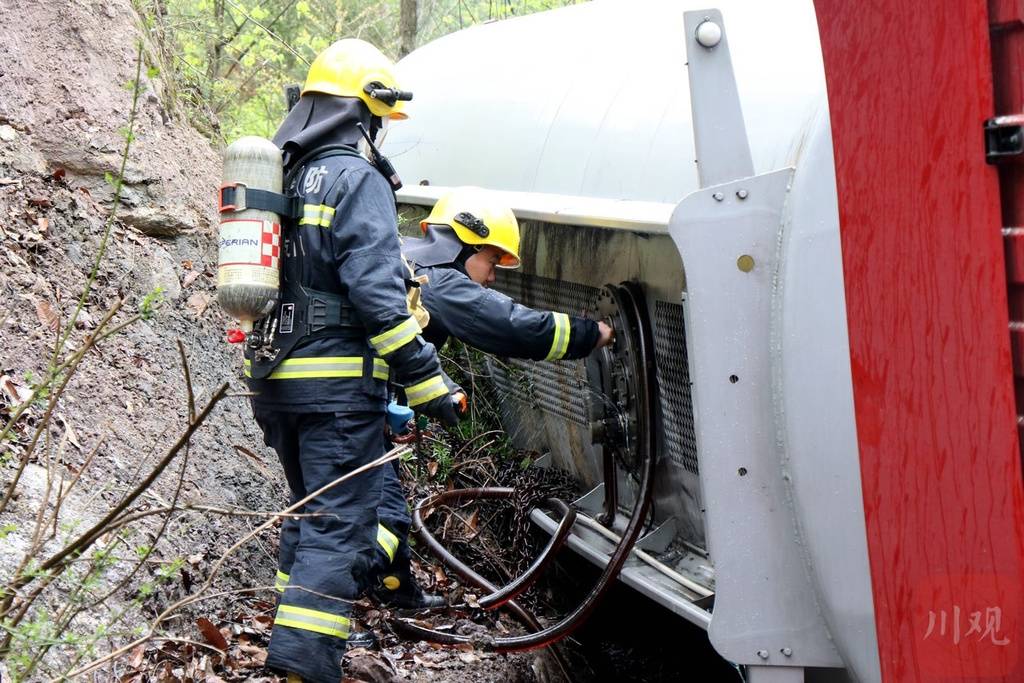 4月6日上午,位于四川省广元市青川县国道543路段,一辆载有32吨柴油的油罐车在下坡转弯时发生侧翻,导致油罐车顶部破裂,现场大量柴油泄漏流淌,情况十分危急。