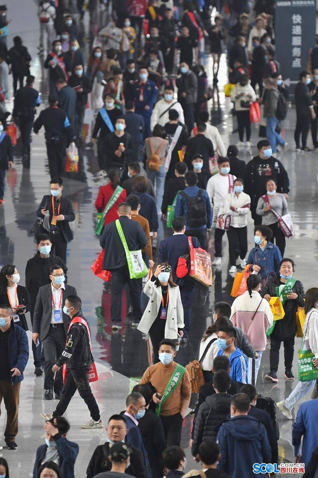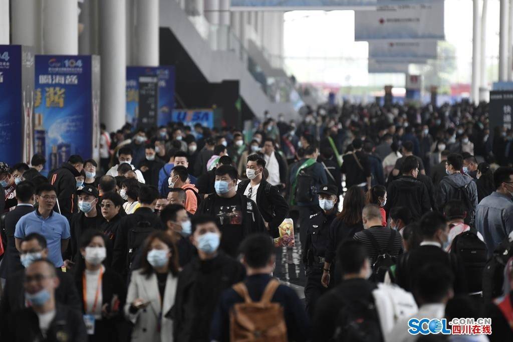 4月7日,第104届全国糖酒商品交易会将在中国西部国际博览城开幕,现场人潮涌动。
