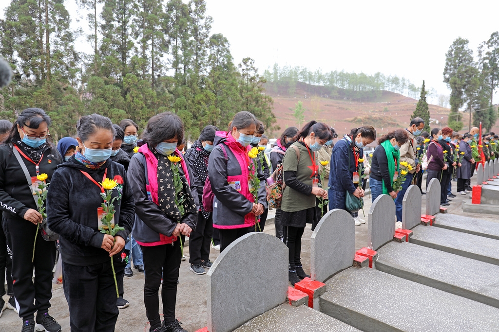 “我们敬爱的先烈们,敬爱的先辈们,用自己的鲜血书写了壮丽人生,用宝贵生命兑现了对党的无限忠诚,兑现了对祖国和人民的深情厚爱,他们是一座座巍峨的丰碑。”4月7日,在凉山州昭觉县烈士陵园,62军185师555团芦海文的后代卢晋英为长眠在这里的烈士先辈带来家乡山西的大枣。