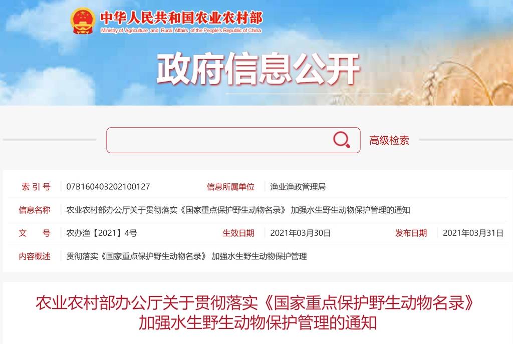 4月8日是国际珍惜动物保护日。四川在线记者从农业农村部官网获悉,近日农业农村部办公厅发布了关于贯彻落实《国家重点保护野生动物名录》加强水生野生动物保护管理的通知(以下简称《通知》)。根据《通知》显示,人工繁育大鲵(俗称娃娃鱼)、乌龟等可上市交易,不再适用2020年“禁野令”。