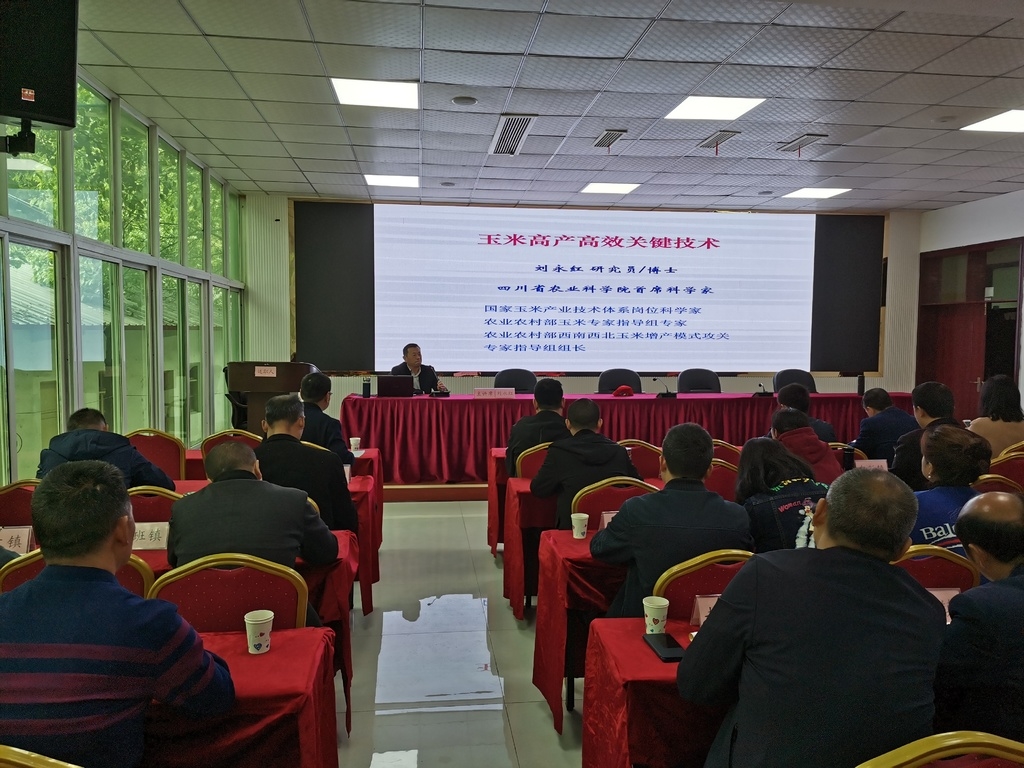 当天,服务团人员还在三台县开展《玉米高产高效关键技术》专题培训,为三台县各乡镇的基层农业人员详细讲解了玉米生产的关键技术。