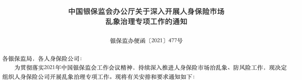 人身险市场乱象整治工作已经启动。近日,中国银保监会官网公布了《中国银保监会办公厅关于深入开展人身保险市场乱象治理专项工作的通知》(下文简称《通知》)。