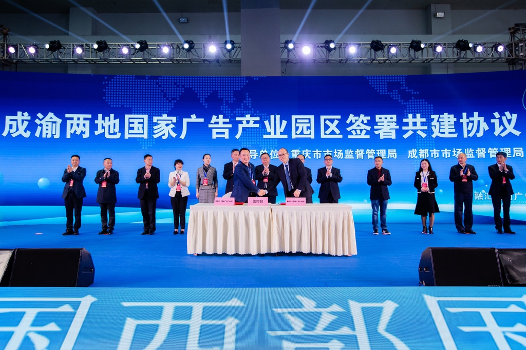 4月9日,川渝广告发展战略合作签约暨川渝城市户外广告发展创新论坛在重庆市南坪国际会展中心开幕。论坛上,重庆国家广告产业园(回兴园、两江园、三峡园)、成都国家广告产业园以及作为指导单位的重庆市市场监督管理局、成都市市场监督管理局,四方共同签署了《成渝两地国家产业园区共建协议》。