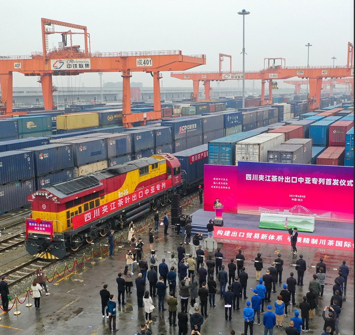 这是四川发出的首趟前往中亚的农产品专列,也是四川历史上首个开出国门的茶叶专列。