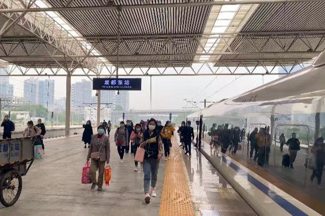 4月10日中午12点28分,一辆和谐号动车从广安南站缓缓驶出,将一站式直达成都东站。