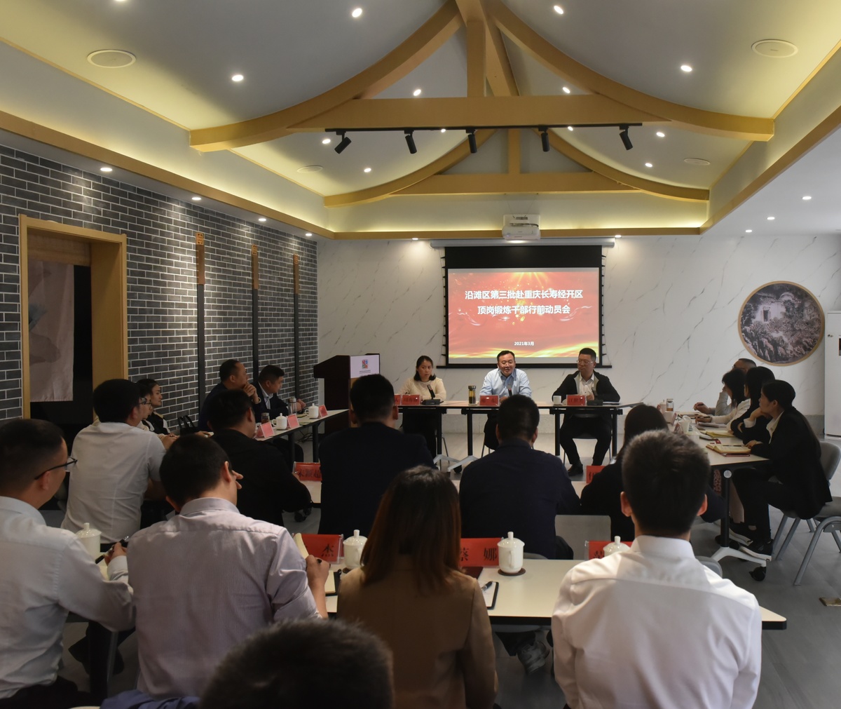 3月22日,张梁等5名沿滩干部作为第三批派出干部,前往重庆长寿经开区。“希望顶岗锻炼干部勤于思考、善于摸索,要把在重庆长寿经开区学到的好思想、好方法、好举措,运用到沿滩高标准打造特色工业园区,建设承接东部地区产业转移先行区中去,用青春热血激发城市活力,增添发展动力,助推沿滩高质量发展!” 动员会上,沿滩区委常委、副区长,组织部部长,沿滩高新技术产业园区党工委书记廖东如是说。