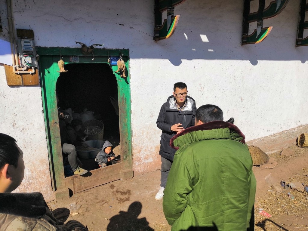 4月12日,凉山州喜德县鲁基乡依洛倮村第一书记万智勇来到村民海来五且的家,看望他的近况。