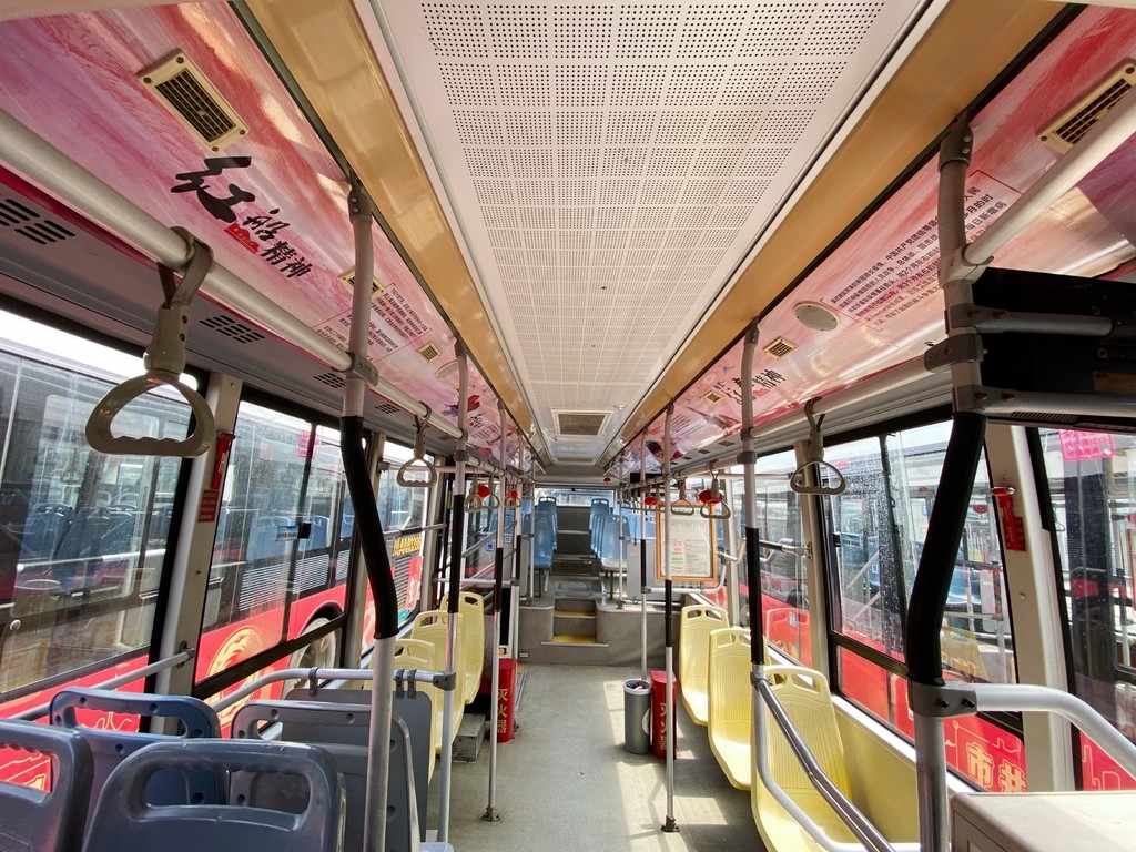 这是为庆祝中国共产党成立100周年,成都公交集团党委依托车厢文化,结合线路特色打造的车厢里的党史教育“微课堂”。走进车内,车厢风道展板上以党史故事的形式,图文并茂地展示红船精神、井冈山精神、长征精神、遵义会议精神、延安精神、西柏坡精神、抗美援朝精神、抗疫精神等伟大精神。
