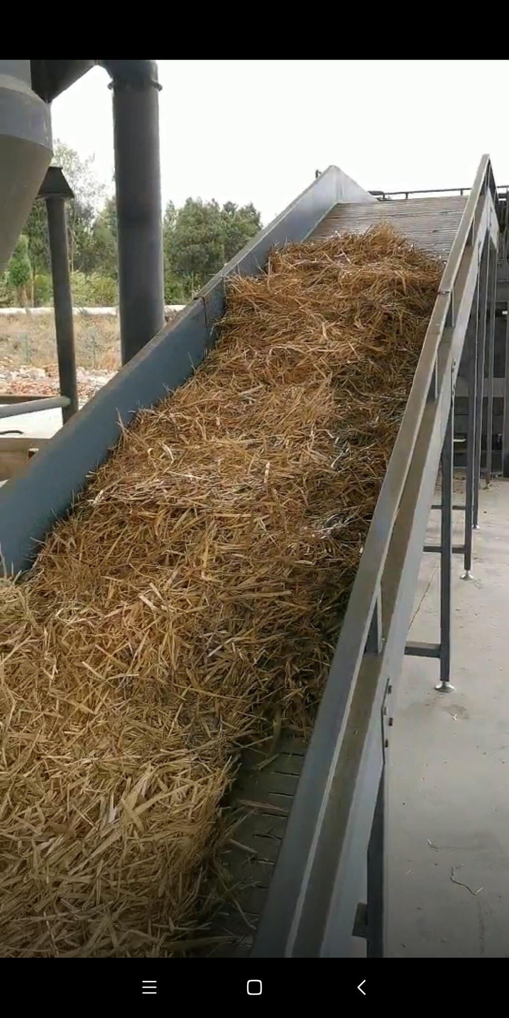 传输带上正在处理的秸秆